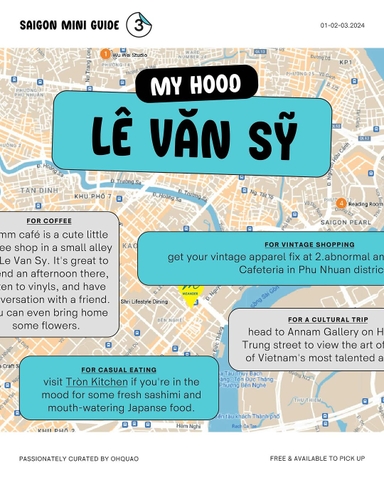 3️⃣ Saigon Mini Guide số 3, hay SMG03, đã ra mắt chủ đề “Brand New Start”. Đúng như tên gọi, SMG03 hé lộ một khởi đầu mới, trải nghiệm mới, và tất nhiên, nhân vật mới. Đồng hành cùng SMG03 vẫn là những chuyên mục siêu quen thuộc như Ask a Saigonese, Gift Guide, My Hood và chiếc map nhỏ xinh để bạn tự mình “lục lọi” thám thính Sài gòn.
