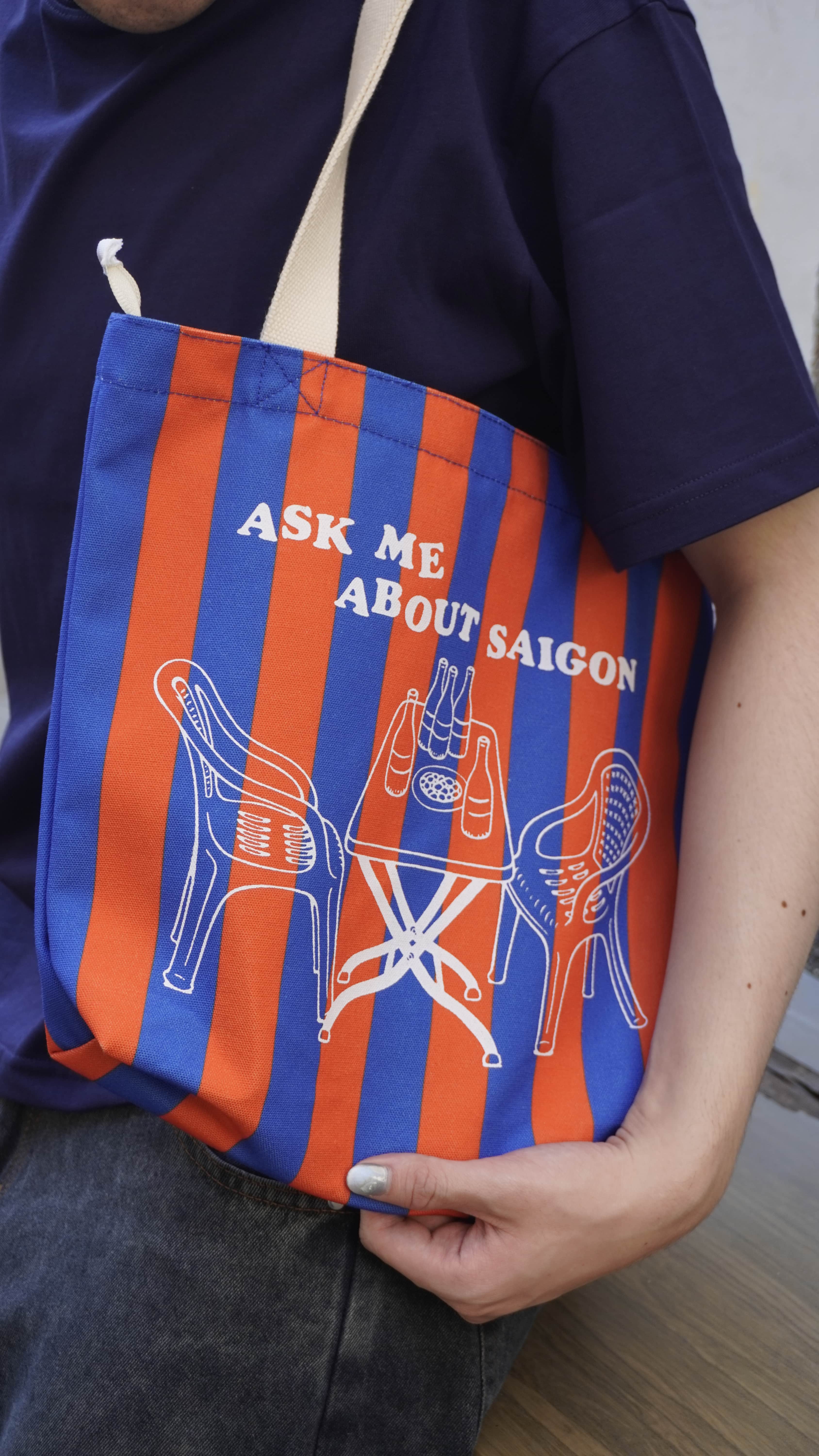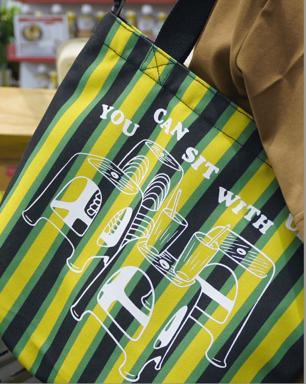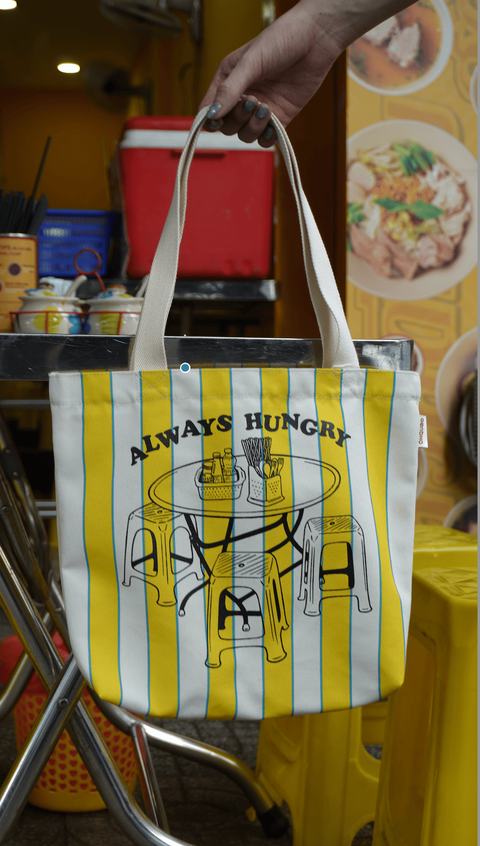 Giống như những quán ăn ven đường nơi tiếng chén đũa chan hòa cùng câu chuyện rôm rả, chiếc tote bạt này được tạo ra để gợi nhắc tinh thần ấy – thoải mái, giản dị mà kết nối. Một chiếc túi bạn có thể mang đi bất cứ đâu, vừa tiện để đựng mọi thứ cần thiết, vừa như một “không gian nhỏ” để bạn nhớ về những khoảnh khắc ngồi ăn, trò chuyện và cười cùng bạn bè